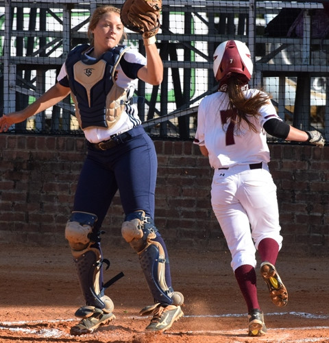 In the top of the seventh, Jessica Magee led off with a bunt, moving all the way to third base on an error on the throw to first as the sun got into first baseman Hali Harvey's eyes, allowing the throw