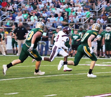 Dylan Schaubhut (22) scoring Cameron Thomas on a 24 yard run