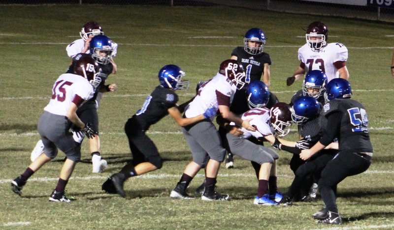 East Central came back and moved the ball deep into PRC territory on a long run by quarterback Eli Smith. However, Smith was hit behind the line on fourth down on the last play of the half, fumbled the ball, and the Blue Devils’ Jeffrey Thedy scooped up the loose ball and raised down the sideline for a 74 yard touchdown. The two point try failed and PRC led 22-8 at the half.
